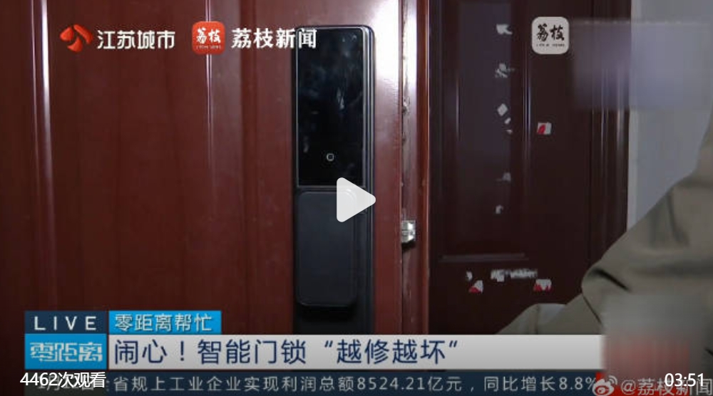 1499元购买的德施曼智能门锁,在安装次日便出现电池无法充电的故障。在经历更换电池、更换后屏乃至维修后,门锁不仅原有问题未解决,反而增添了无提示音、防撬报警功能失效等新问题。尽管消费者要求换新,但最初遭到拒绝,最终在媒体与商场客服介入调解后,才得以更换新锁。