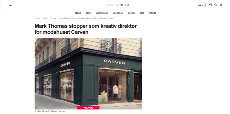 据fashionunited等媒体报道,法国时装品牌Carven宣布创意总监 Mark Thomas 将于本月底离任,寻求新的发展机遇。