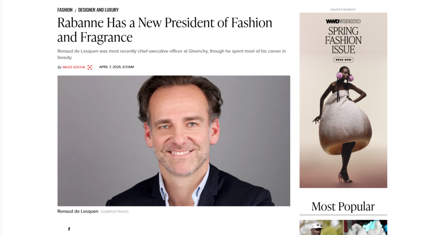 据WWD报道,西班牙美妆时尚集团Puig宣布任命Renaud de Lesquen为旗下Rabanne品牌总裁,统领该品牌的时尚与香水两大业务板块。