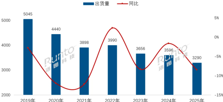 洛图科技数据显示,2025年中国电视市场品牌整机出货量约为3289.5万台,同比下降8.5%,创下近16年来历史新低。在这片红海里,创维不仅要面对海信、TCL等传统对手,还要抵御小米、雷鸟等互联网品牌的价格攻势。75英寸电视价格跌破2000元,85英寸跌破3000元,电视行业内卷之下的“价格战”仍在持续。创维虽然在海外有所斩获,但国内基本盘的松动直接拖累利润表现。
